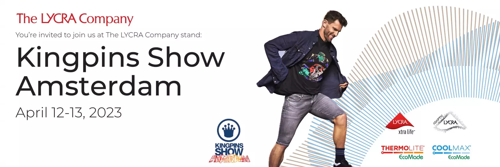 Visiting Kingpins Amsterdam Spring 2023? Stop by stand Blue 06 to see our advanced fibers for sustainable and durable performance denim—including new LYCRA® lastingFIT 2.0 technology that can be made from recycled fibers!